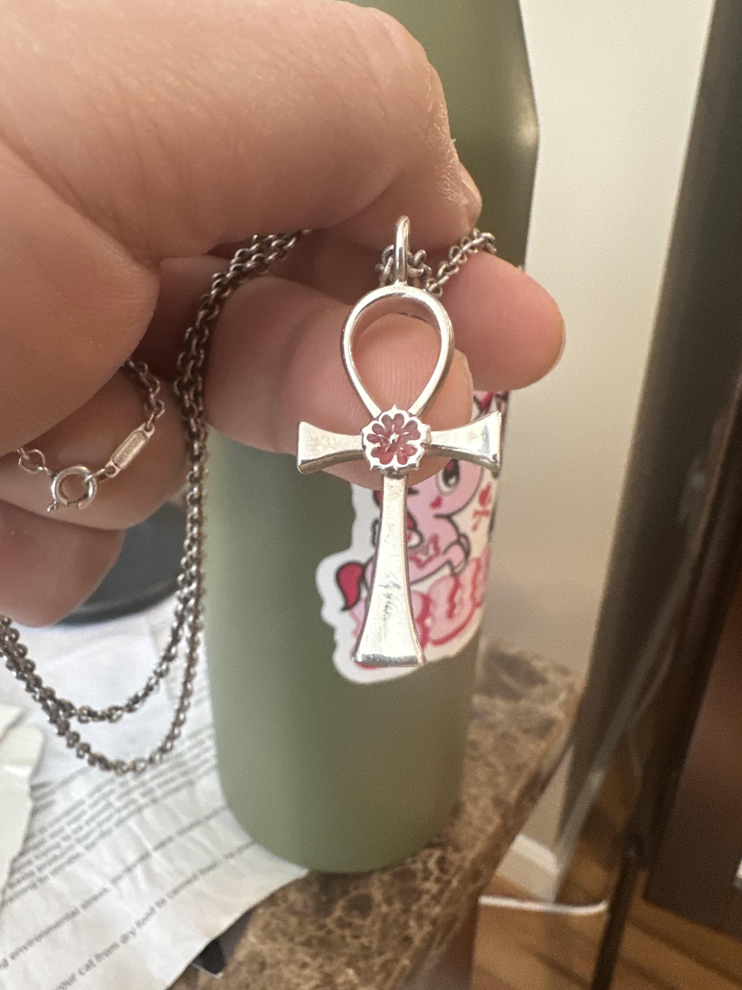 My brand new Alexandrian rose ankh - I commissioned a small business jeweler (she's also a Gard initiate) to craft this for me.